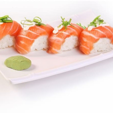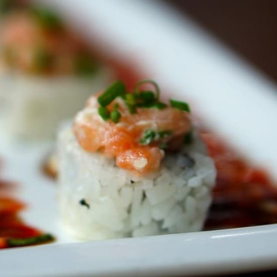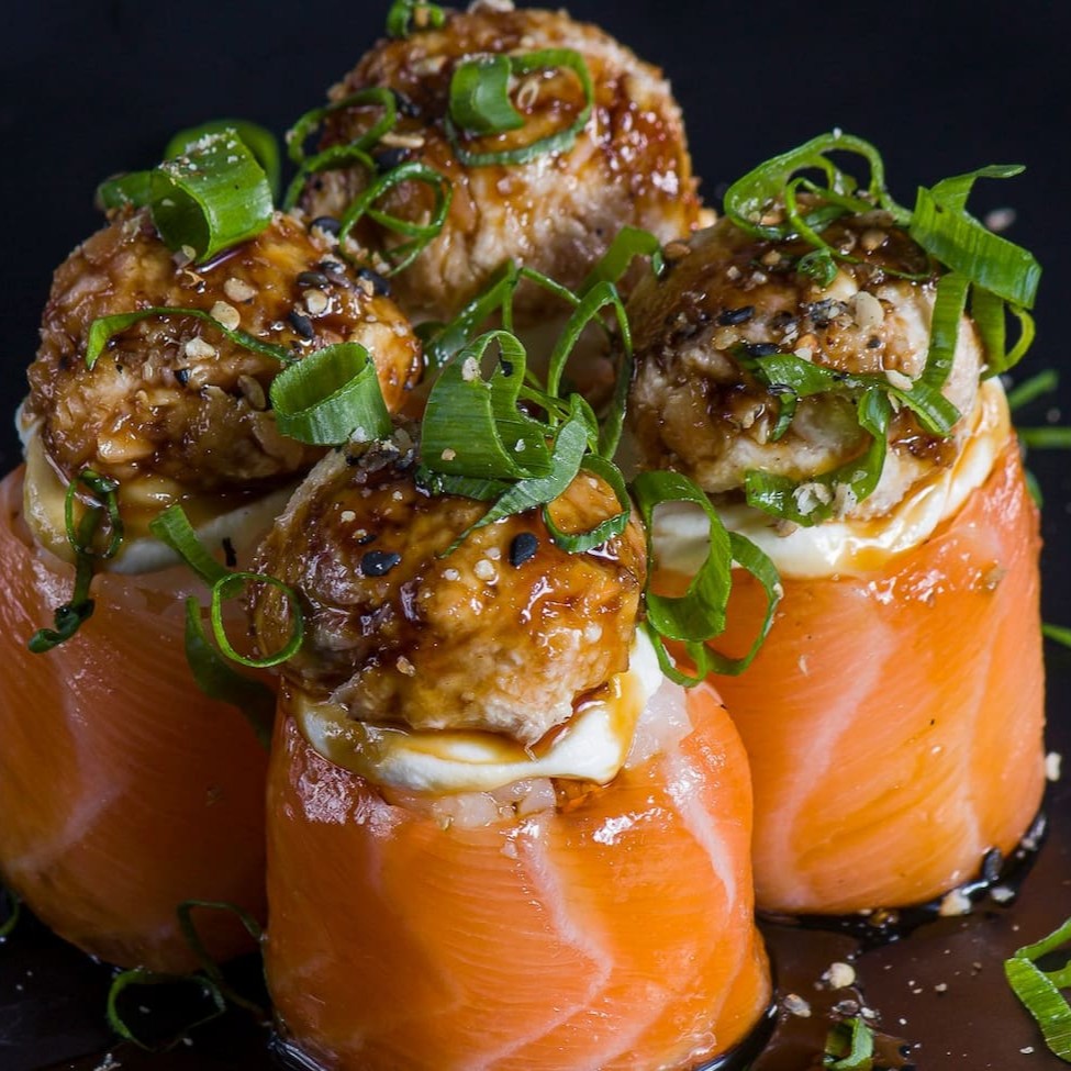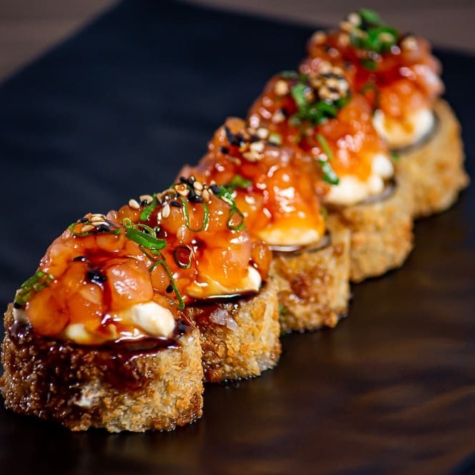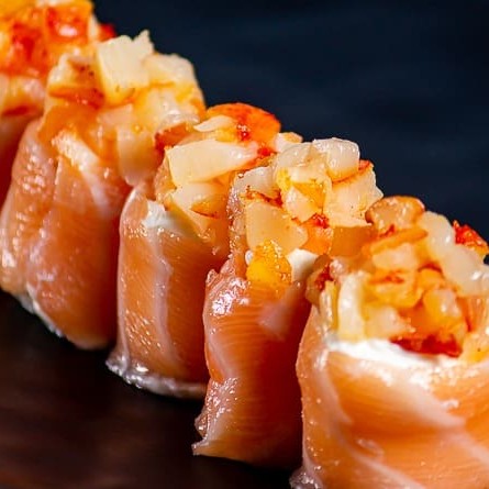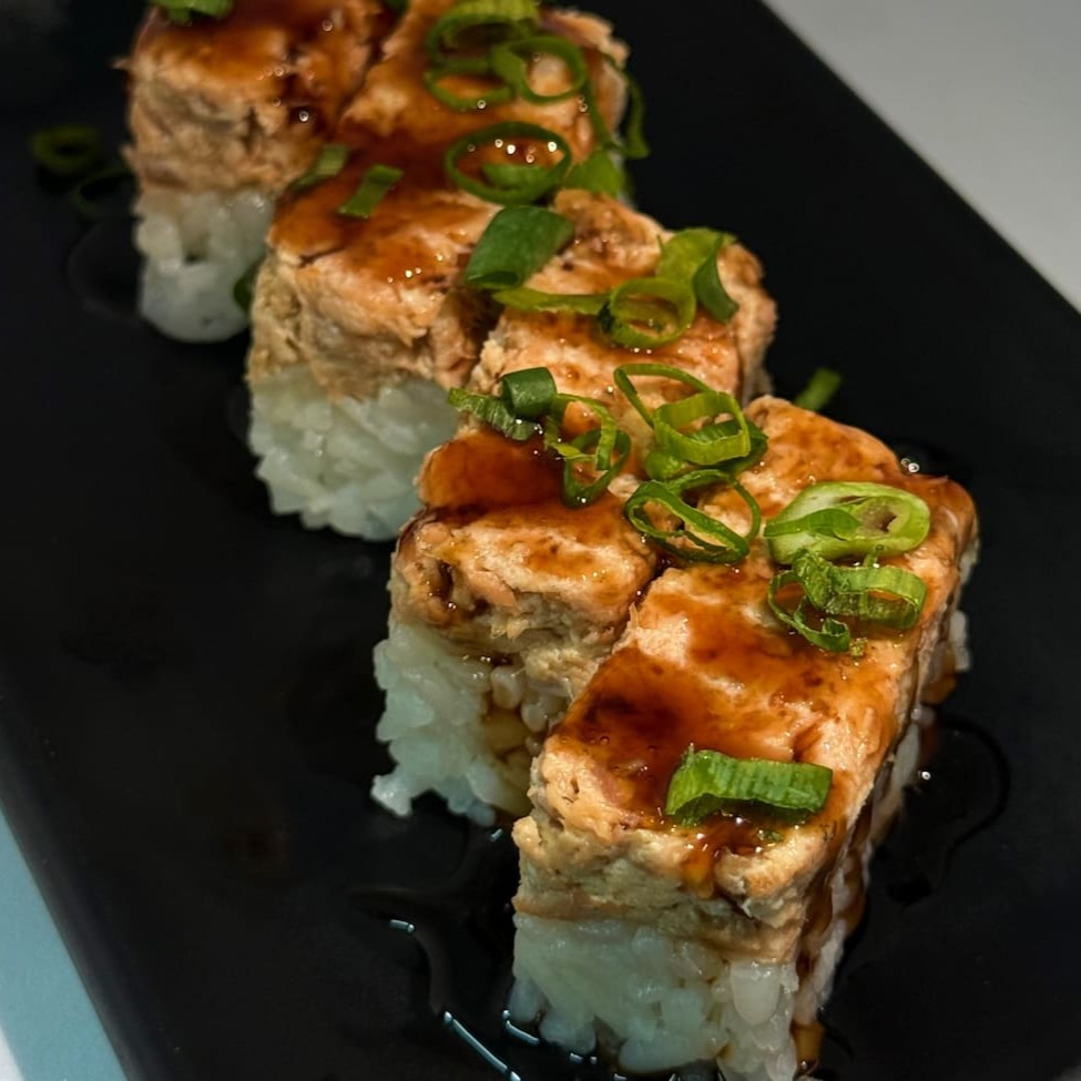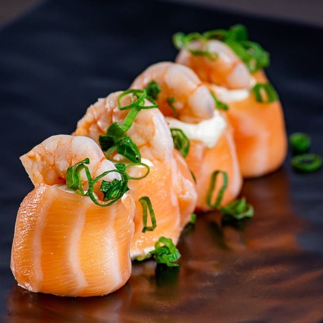 Sushi de salmão fresco finalizadas com um toque refinado de azeite trufado e flor de sal. Uma explosão de sabor que equilibra a untuosidade do peixe com a sofisticação do trufado e o realce delicado da flor de sal.