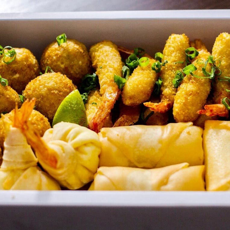 Combinado Seiko Premium Hot (22 peças) 6 Hots Cubo 6 Hots com Geleia de Pimenta 6 Hots Crispy 2 Harumakis de Frango 2 Harumakis Banana Nevada