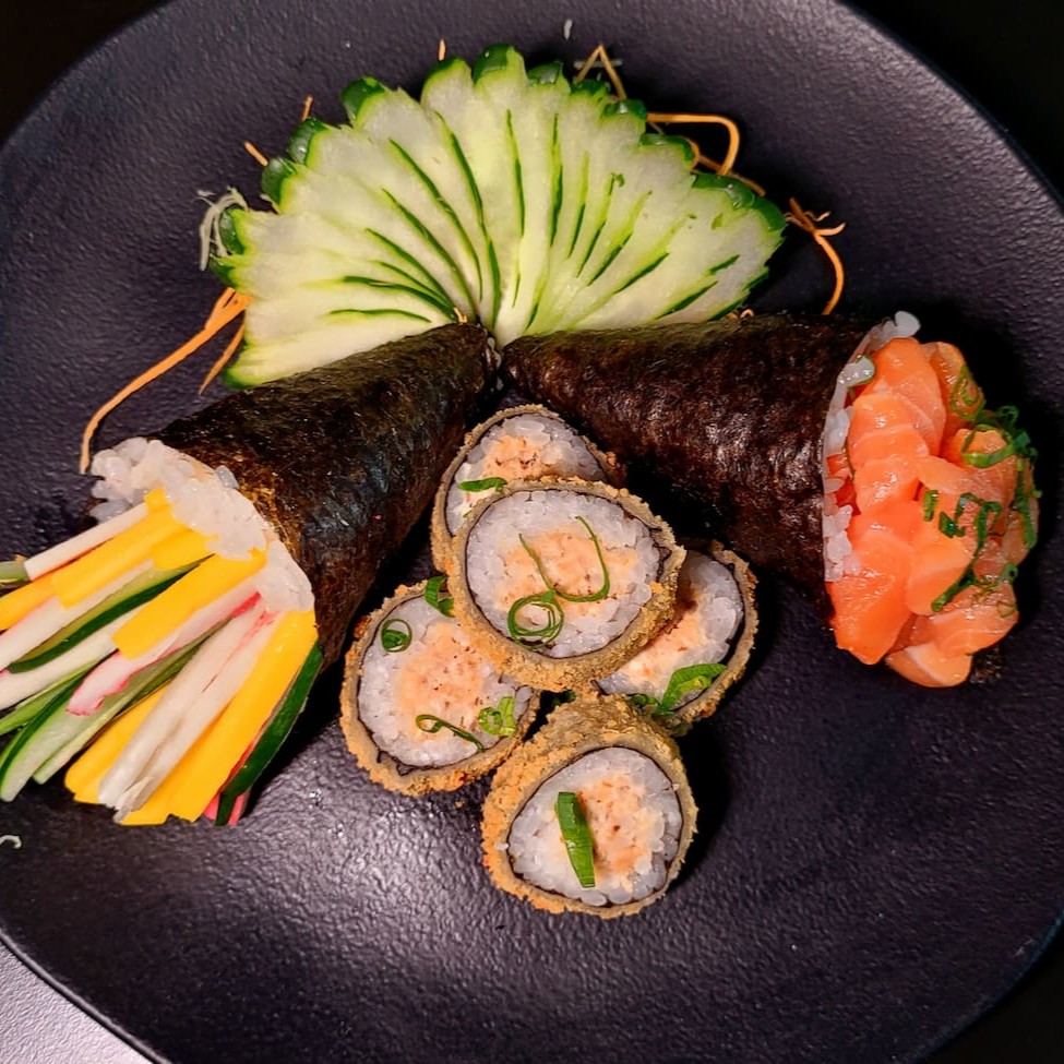 5 sushis a sua escolha, 5 sashimis a sua escolha, 5 makimonos a sua escolha e um refrigerante 200ml