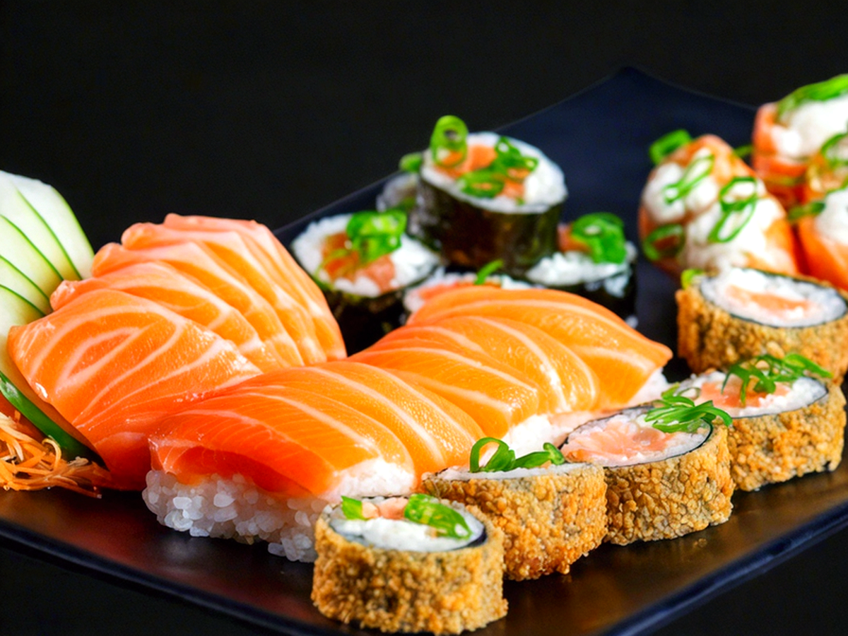 5 Sashimi peixe branco 5 Sashimi haddock 5 Sashimi salmão 4 Sushi de salmão premium 4 Sushi de peixe branco premium 5 Makimono philadelfia 5 Makimono super philadelfia 4 Especiais de camarão com geleia de pimenta 5 Uramaki com molho especial