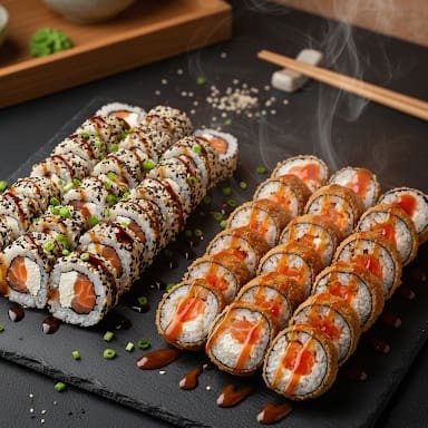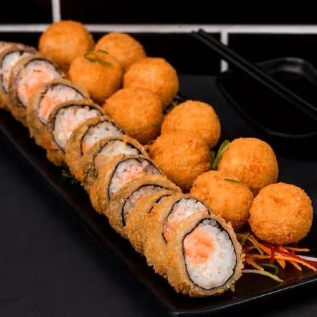 Deliciosos roll crocante sobreposto de creem chesse, salmão, cebolinha e gergelim coberto com molho especial.