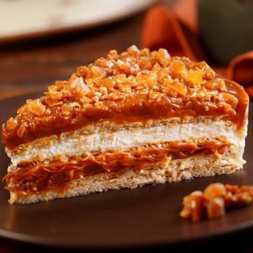 torta tipo pave com recheio de doce de leite e cobertura de crocante de amendoim.