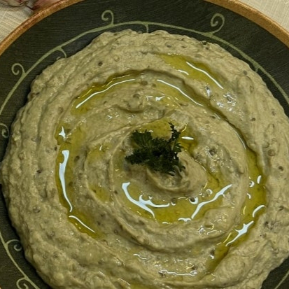 É um creme a base de beringela, tahine e muitos ingredientes Árabes que combinam com nossos deliciosos Shawarmas.