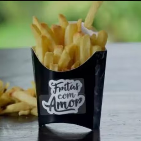 Batatas bem fritinhas no modelo palito fino, macia por dentro, crocante por fora, bem servido para uma pessoa.