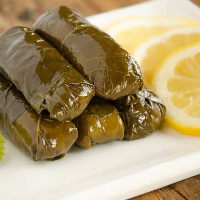 "Tradicional charuto de folha de uva, recheado com carne moída e arroz, temperado com especiarias árabes e cozido lentamente em molho de tomate artesanal. Um sabor autêntico e irresistível diretamente do Oriente Médio!"