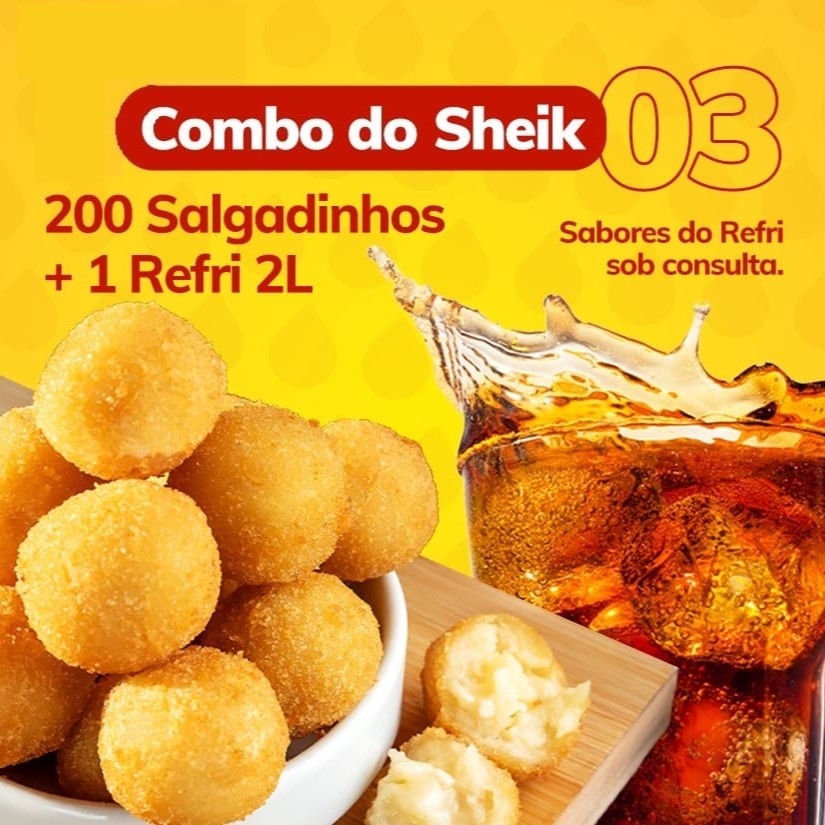Este especial 'Salgadinhos Fritos - 30 Unidades da nossa categoria 'Especiais do Sheik' traz para você a irresistível combinação de 30 delicados salgadinhos de festa pesando 15g cada, crocantes e sequinhos, que são aclamados como os melhores da região por nossos estimados clientes. Cada mordida revela um sabor inigualável que agrada ao paladar mais exigente. Para completar, oferecemos uma bebida de sua preferência, garantindo uma experiência gastronômica completa e prazerosa.