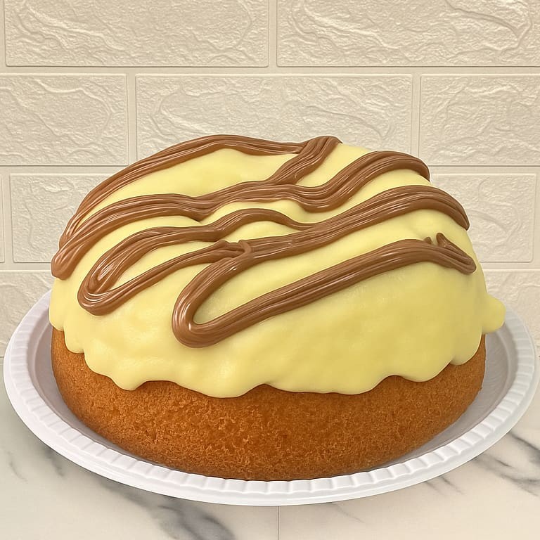 Nosso mini vulcão de Ninho com Nutella é feito com massa caseira de Ninho, recheado com brigadeiro de Ninho cremoso e finalizado com um toque especial de Nutella. Serve de 7 a 8 fatias.