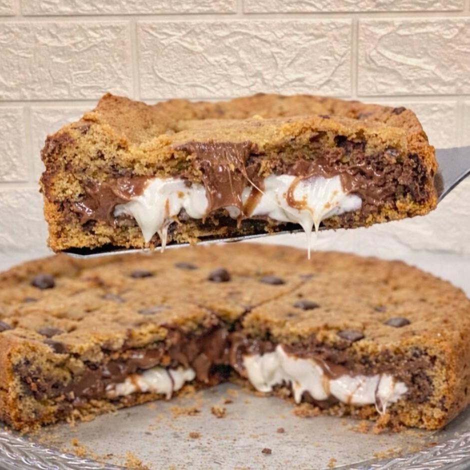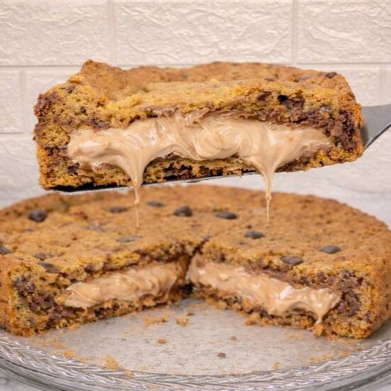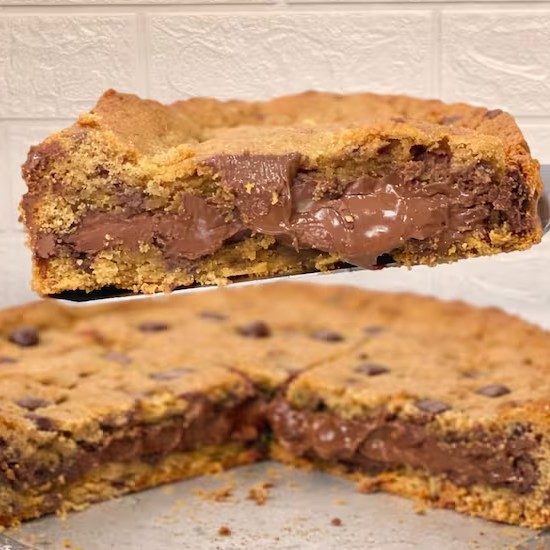 Nossa torta de cookie, com gotas de chocolate e recheada com Nutella, oferece uma explosão de sabor a cada pedaço.
