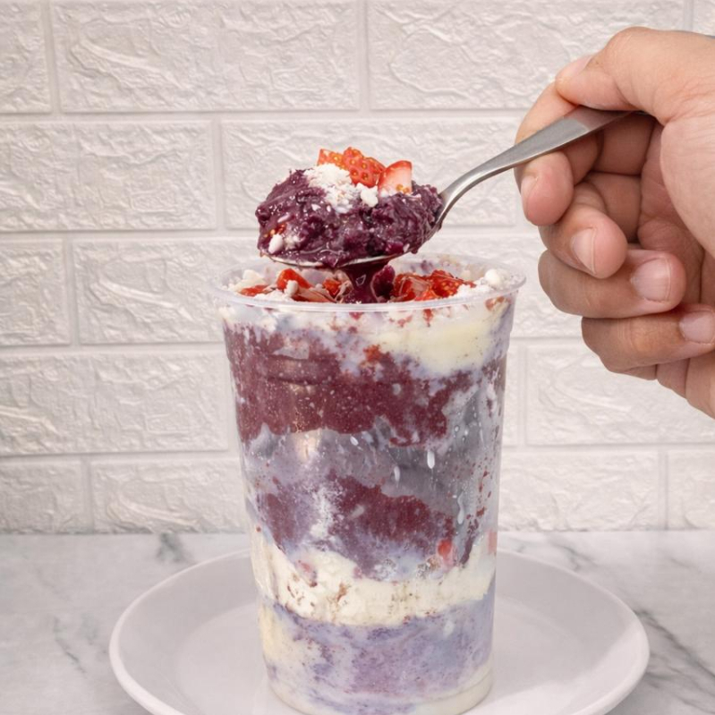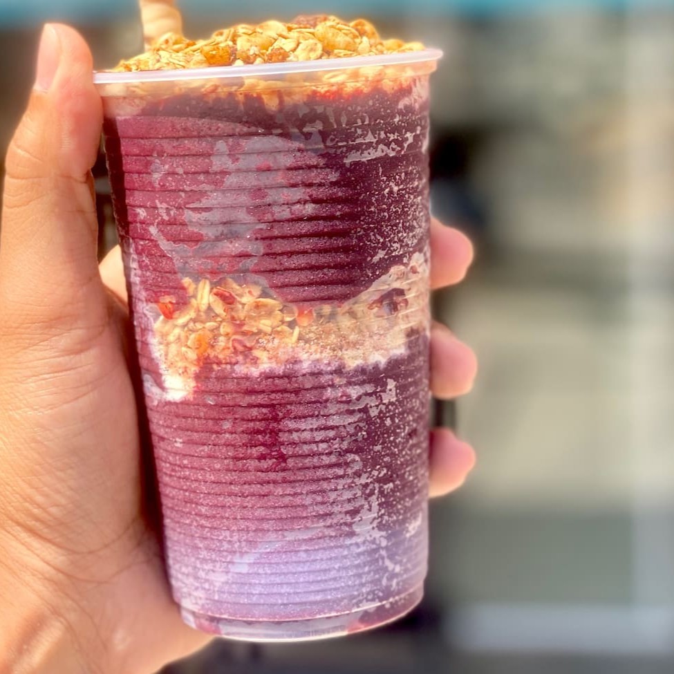 Nosso Açaí Nosso açaí é preparado diretamente na nossa loja, batido com frutas frescas e selecionadas (ou sem frutas, caso prefira), garantindo o melhor sabor. Servido em um copo de 300ml, ele está pronto para ser personalizado do seu jeito! Adicione caldas, frutas e confeitos para criar a combinação perfeita e deliciosa.