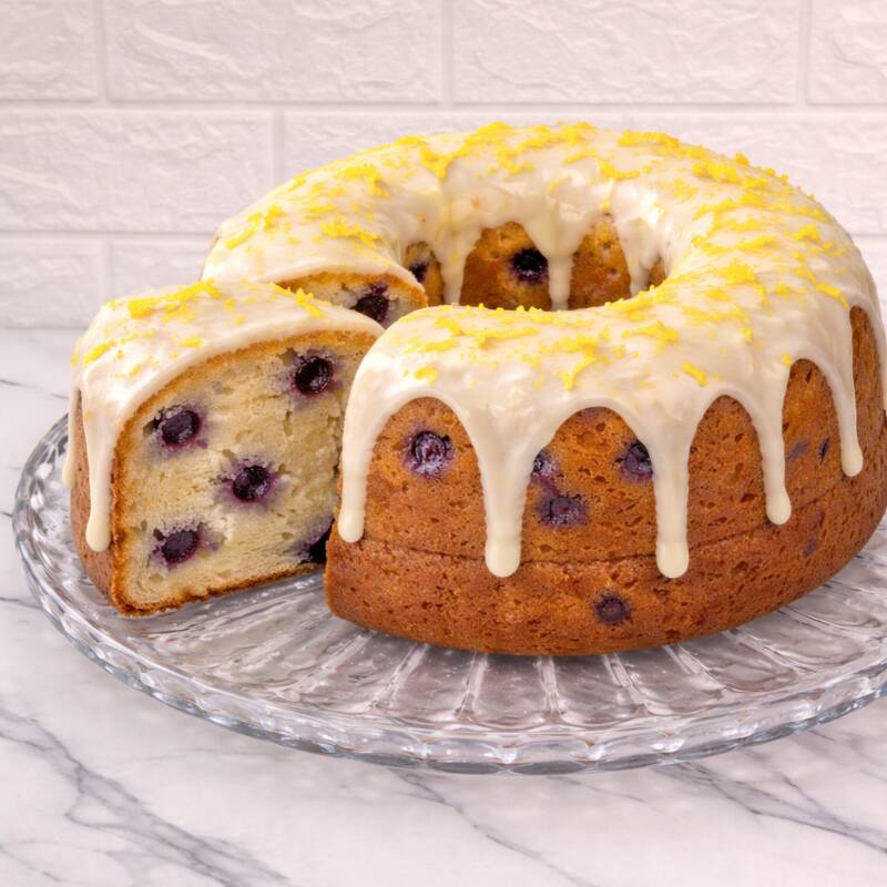 Massa de baunilha com Mirtilo e cobertura de limão. Rende de 7 a 8 fatias.