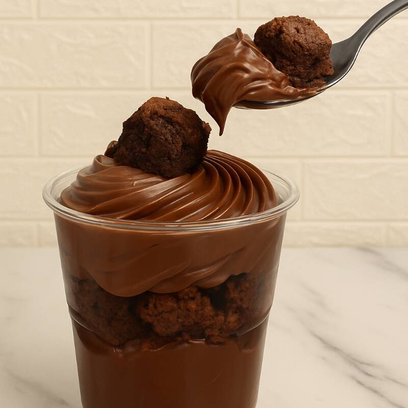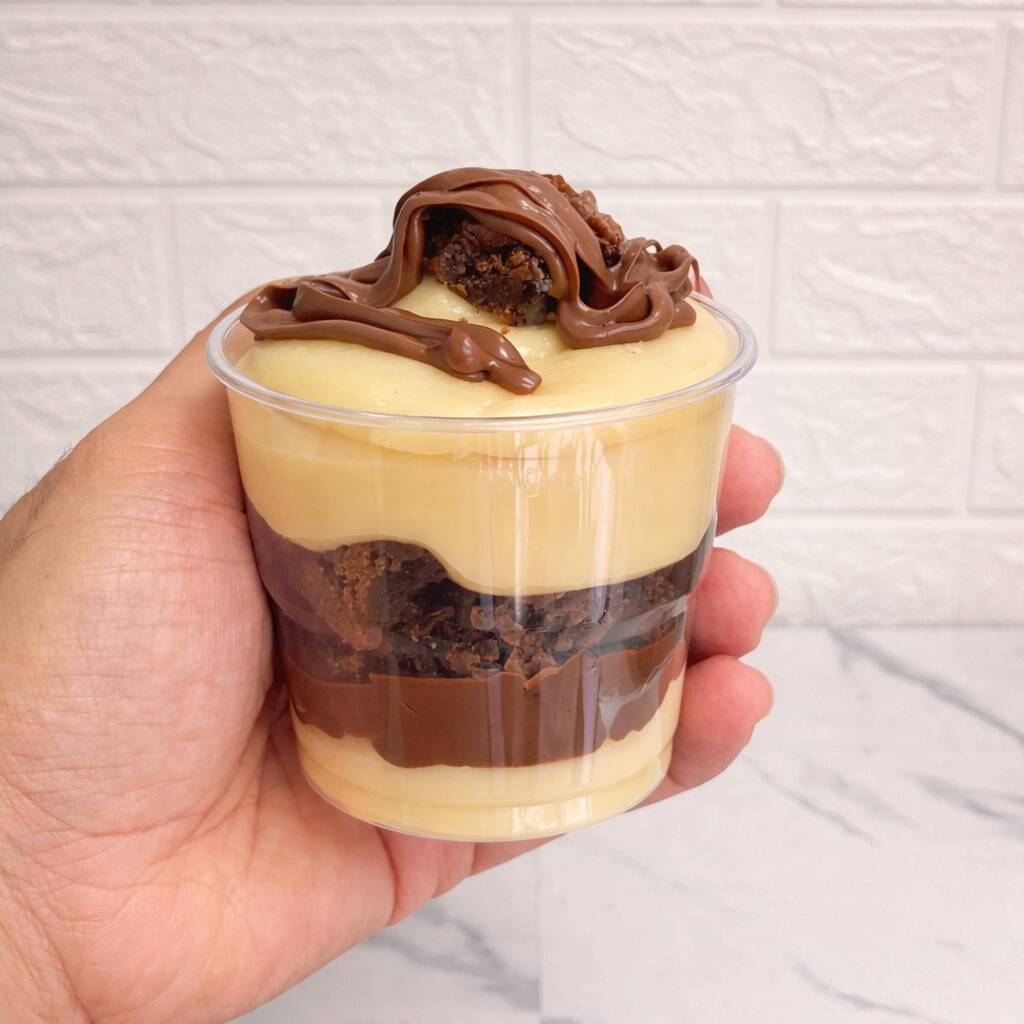 Camadas de brigadeiro 50% cacau e pedaços de brownie. Intenso, cremoso e com muito chocolate. Copo 150ml