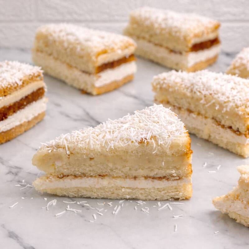Massa amanteigada com recheio cremoso de coco e mousse de coco. Sabor delicado e irresistível.