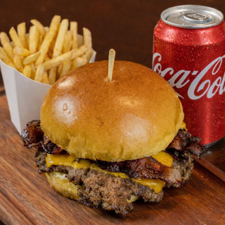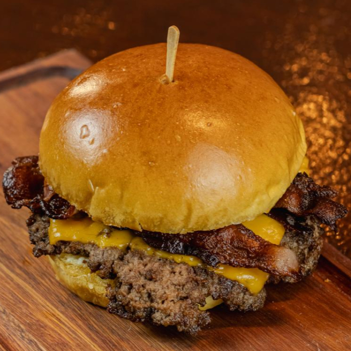 Pão de brioche, Smash Angus 100gr (carne prensada na chapa que gera um sabor maravilhoso), queijo cheddar Polenghi, bacon e maionese silver.