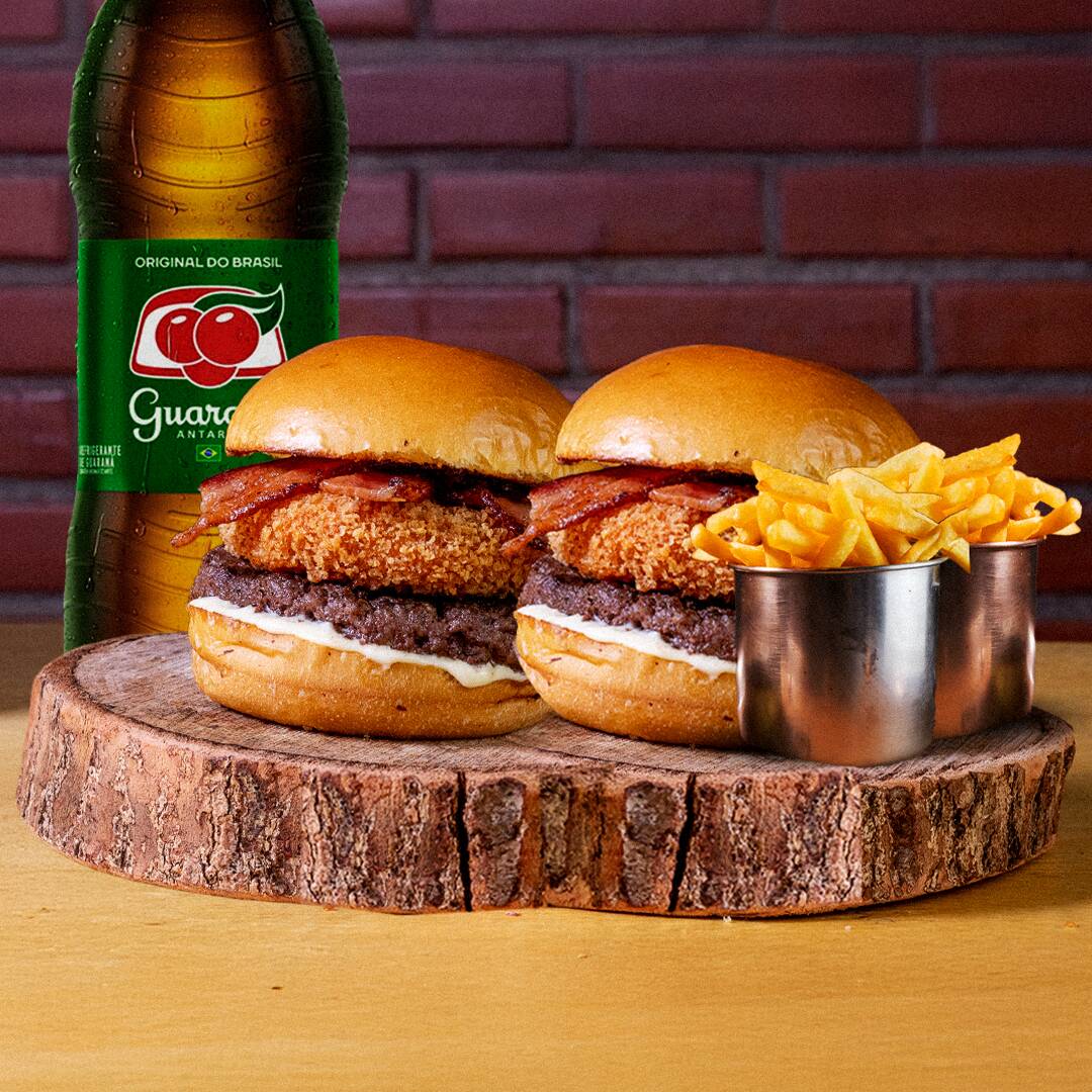 Pão brioche, Carne Angus 160gr, Catupiry Original Empanado, Bacon em fatias e Maionese silver