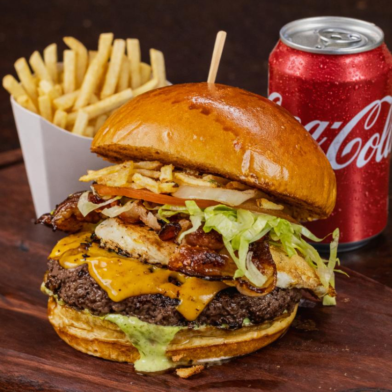 O burger mais vendido do mundo na versão artesanal: Pão brioche, Blend Angus 160gr, Queijo Cheddar, Ovo Frito, Bacon em Fatias, Salada Fresca, Batata Palha e Maionese Verde Temperada