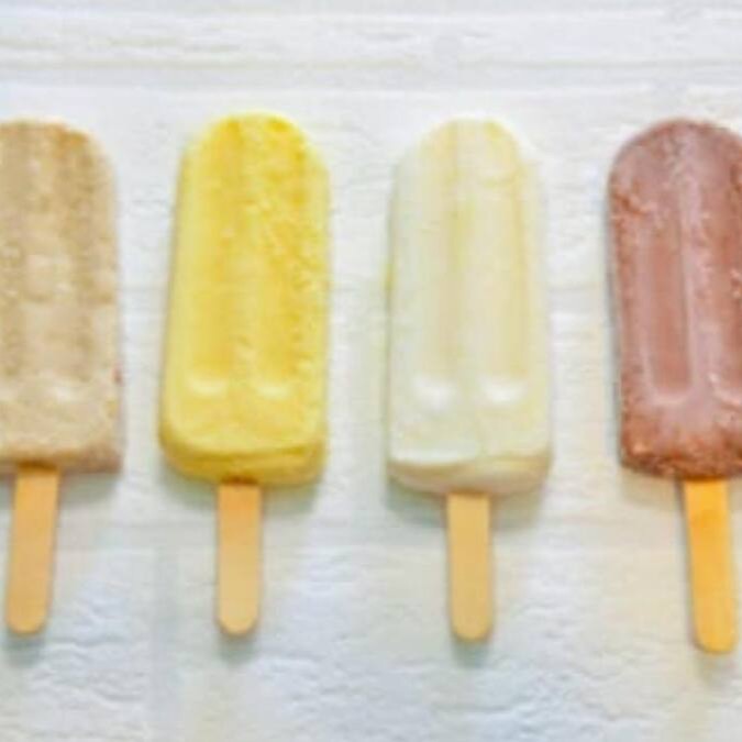 Delicioso picolés ao leite com os maravilhosos sabores: Chocolate, Coco, Leite condensado, Milho verde e Paçoca.