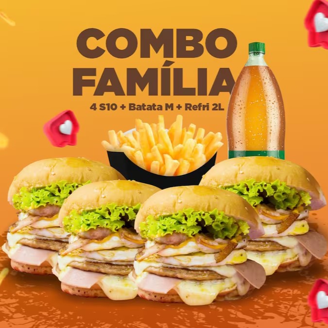 Descrição: Pão, 2 Carnes 2 Ovos, Salada, Queijo E Presunto, Bacon Picado, Billyjack E Katchup