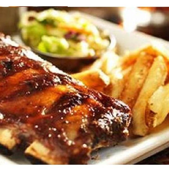 Uma incrível costela suína de 1 kg, generosamente temperada com nosso barbecue especial, e incrementada com cebola e bacon crocante. Acompanha um delicioso arroz de brócolis frescos e suculentos, batatas rústicas douradas ao forno e, para completar, uma farofa de ovos rica em sabor e um vinagrete fresco e temperado.