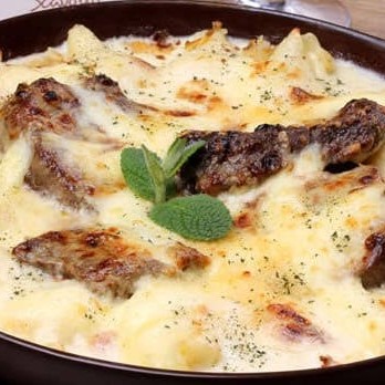 Recheado com suculentos cubos de alcatra, queijo coalho derretendo, aipim dourado frito na manteiga e calabresa picante e saborosa. Este prato é complementado com uma deliciosa farofa de alho, proporcionando a combinação perfeita de texturas e sabores.