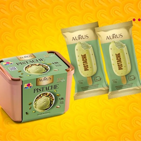 Combo desejo para os maníacos por pistache. Contém 01 Pote Aurus Pistache 1,5l + 2 Picolés Aurus Pistache.