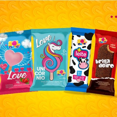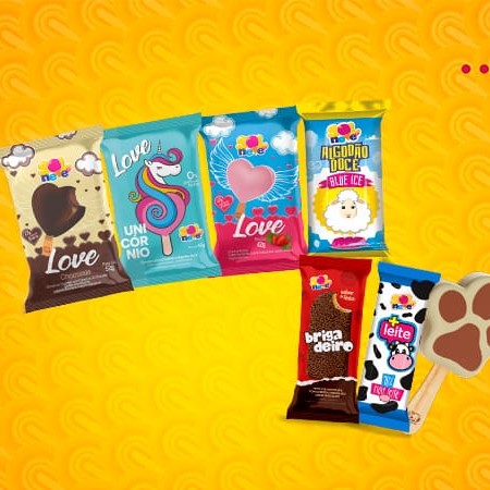 "Contém: 1 picolé love moranguinho + 1 picolé love unicórnio + 1 picolé de brigadeiro + 1 ""picolé + leite""."