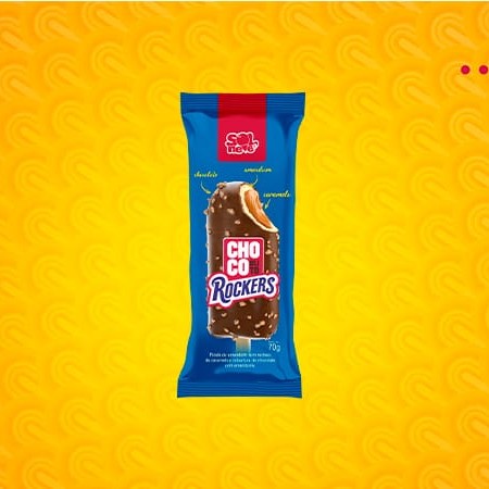 Picolé sabor baunilha com recheio de chocolate ao leite e cobertura de chocolate branco com crocantes de amendoim.