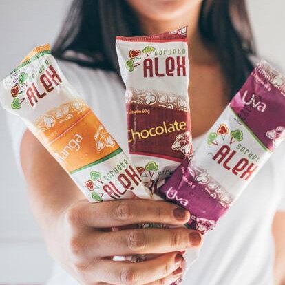Poupa de açaí natural batida com xarope de Guaraná ou com adição de banana/morango.
