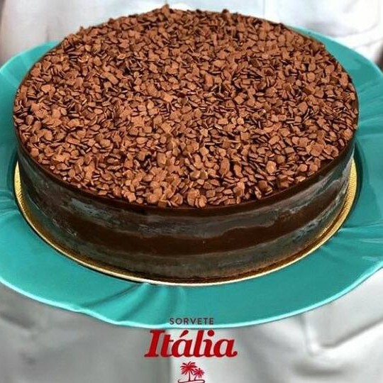 Saborosa Torta de Sorvete de chocolate com um irresistível recheio de brigadeiro e coberto de granulado de chocolate .
