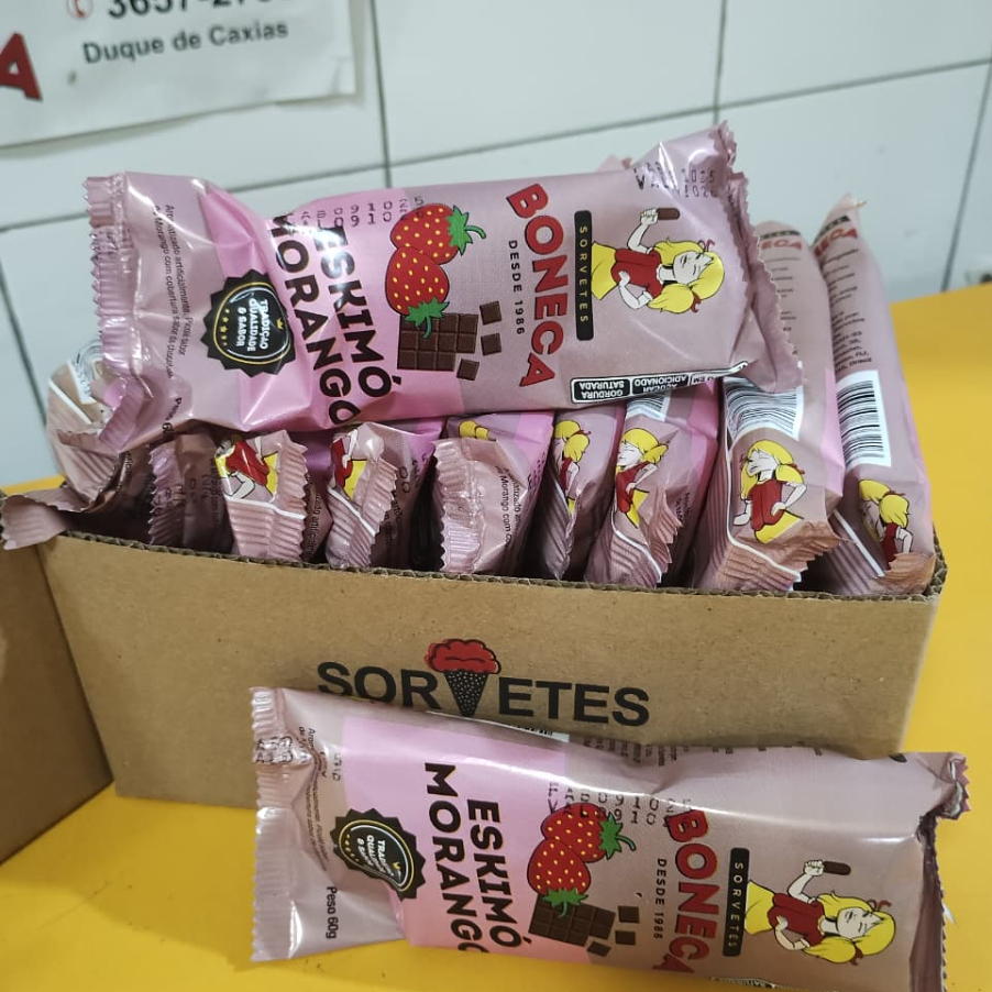 Picolés De Cobertura Morango Boneca Cx Com 20 Unidades Copiar