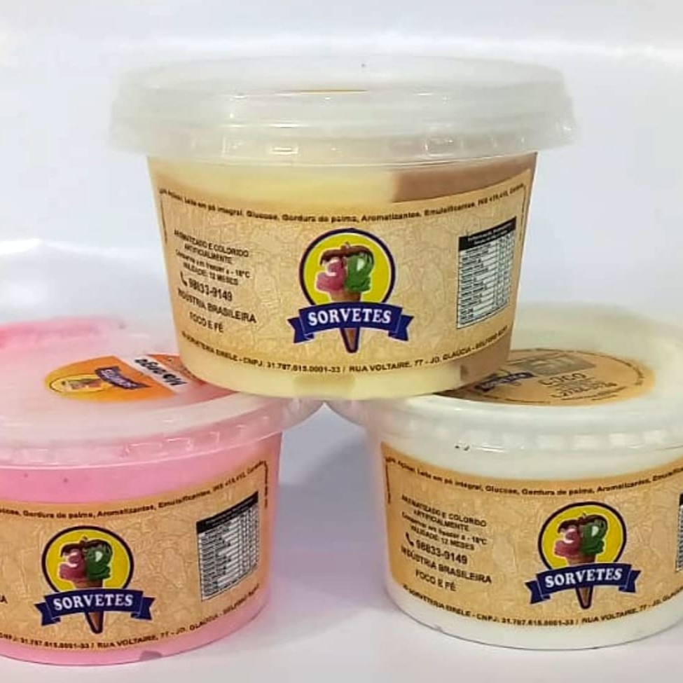 Creme, Frutas Vermelhas, Coco, Napolitano, Leite c/ Avelã, Chocolate Maltado, Chocolate Flocos, Morango, Cookie Morango, Oreo, Bombom Italiano.