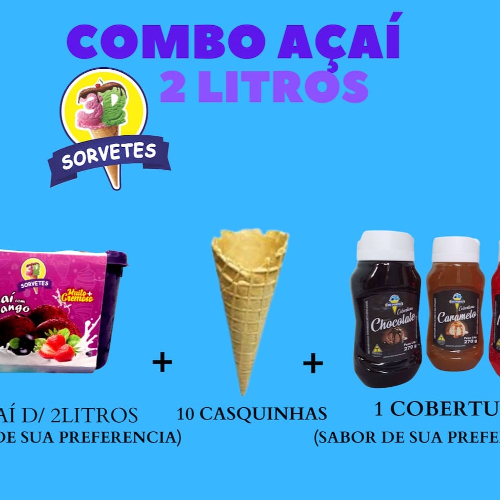 Açaí: Banana Morango Natural Cobertura: Morango Chocolate Caramelo