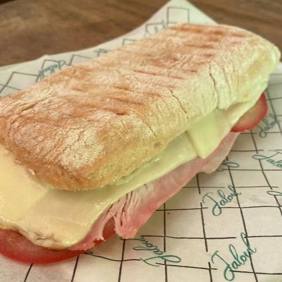 Pão Ciabatta, Mussarela, cream cheese, tomate e presunto