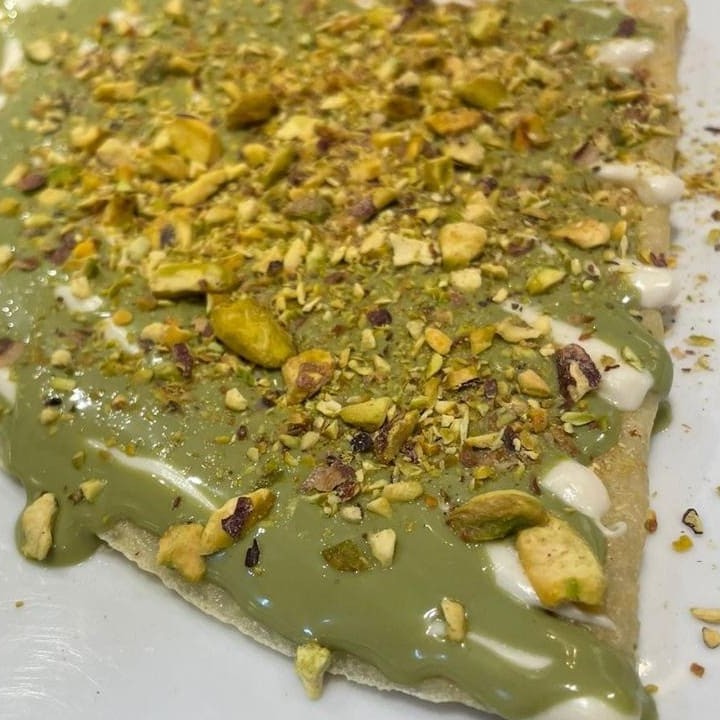 Massa branca com creme de pistache,chocolate branco e pistache