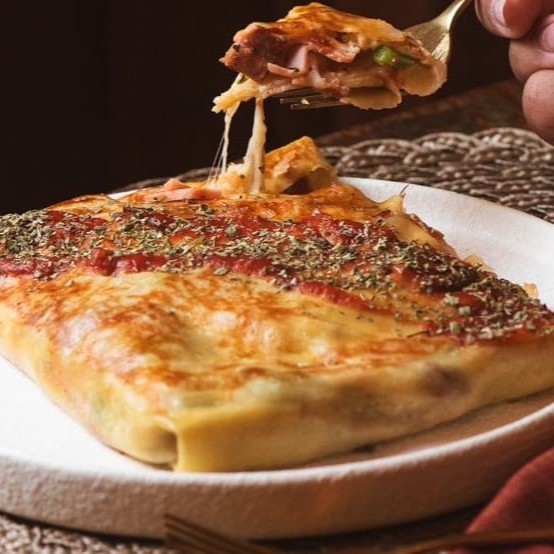 Massa Branca Recheada com Alcatra,cebola,mussarela e Catupiry