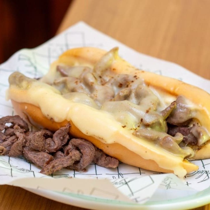 Pão brioche 15 cm, Alcatra acebolada, maionese temperada e mussarela