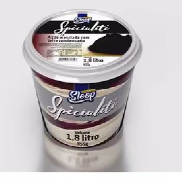 Sorvete especial preparado com leite integral, sabor açaí mesclado com leite condensado. Disponível em potes com 1,8 litro.