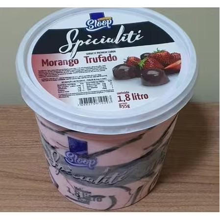 Sorvete especial preparado com leite integral, sabor morango com leite condensado. Disponível em potes com 1,8 litro.