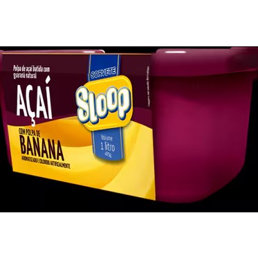 Sorvete cremoso de açaí com polpa de banana pronta para consumir. Pote com 1 litro.
