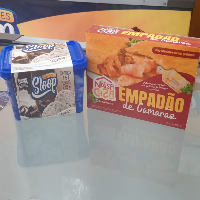 Sorvete De Flocos 1,5 L+ Empadão De Camarão