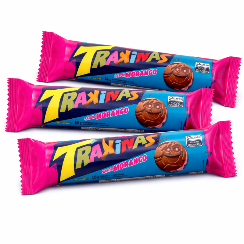3 Biscoitos Recheado Trakinas Morango