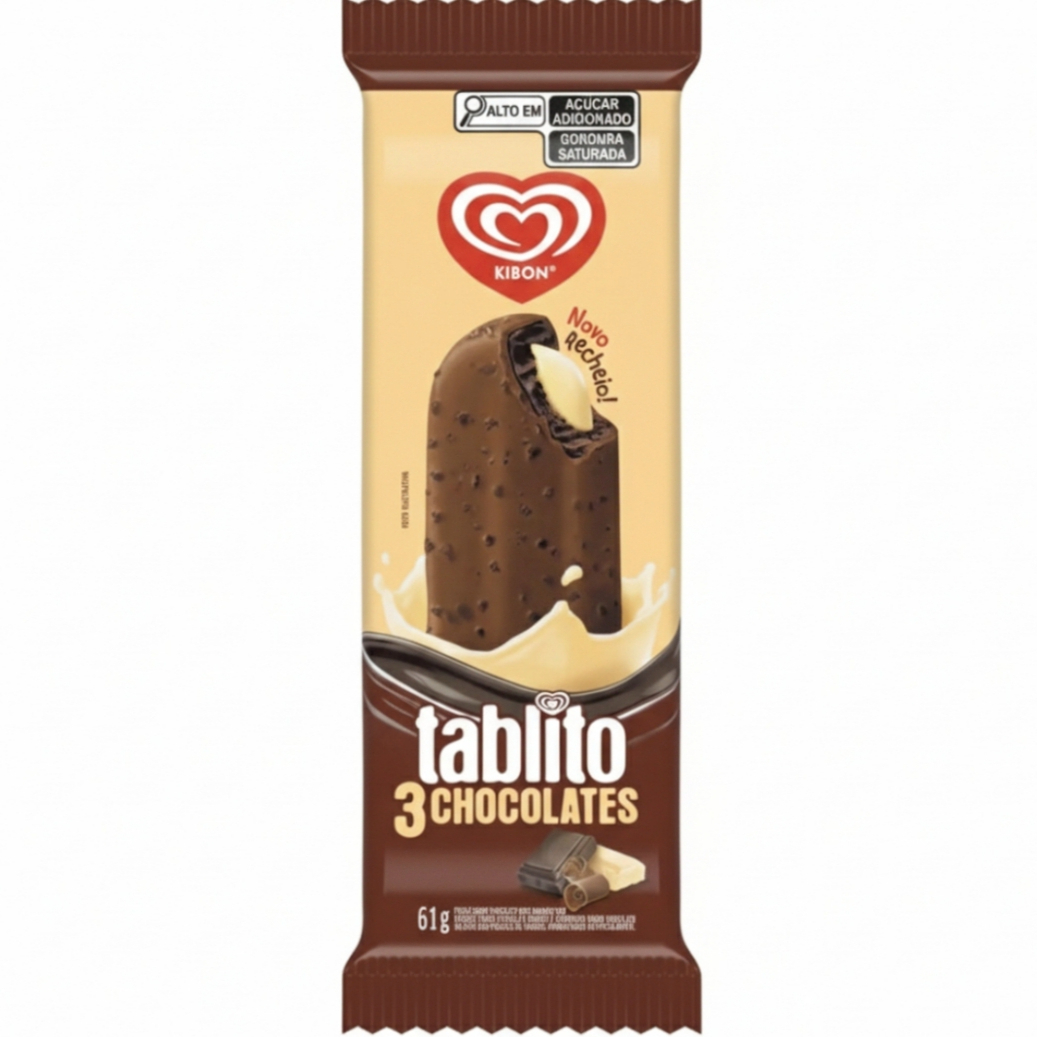 A Kibon Apresenta Seu Mais Novo Lançamento O Tablito 3 Chocolates. Este Picolé Irresistível Combina Três Camadas Deliciosas de Chocolate Para uma Experiência Única. Com Cobertura de Chocolate Ao Leite e Cookies, Seguida por Sorvete de Chocolate Meio Amargo, e a Grande Novidade, Agora O Novo Recheio de Chocolate Branco! Perfeito Para Os Amantes de Chocolate Que Buscam Variedade e Indulgência em Cada Mordida. (aprox. 61g)