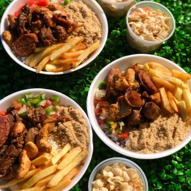 Refeição (Quentinha) Acompanha: Churrasco misto, arroz, feijão, vinagrete, farofa separada e fritas ou saladas