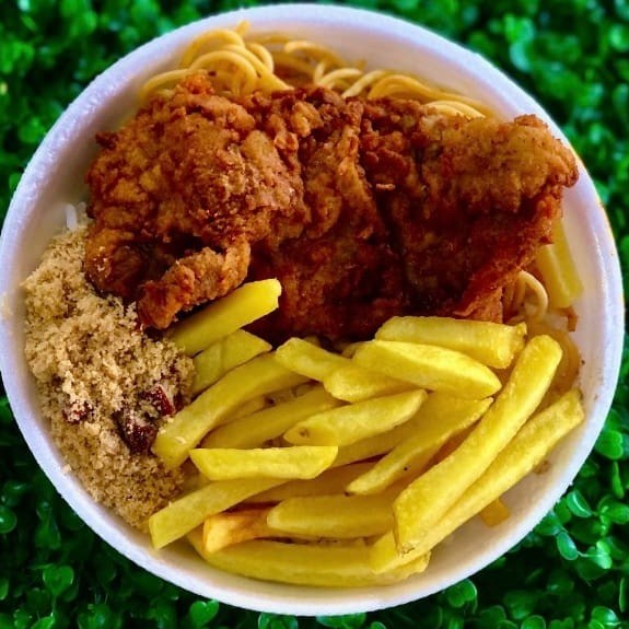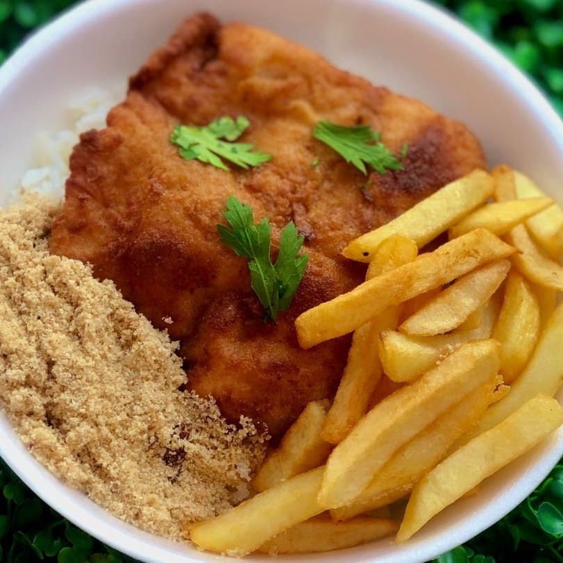 Refeição Gurjão de Peixe Acompanha: Arroz, feijão, macarrão, farofa e fritas ou saladas