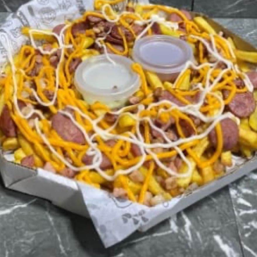 caixa 30 cm, batata, cheddar, calabresa e bacon