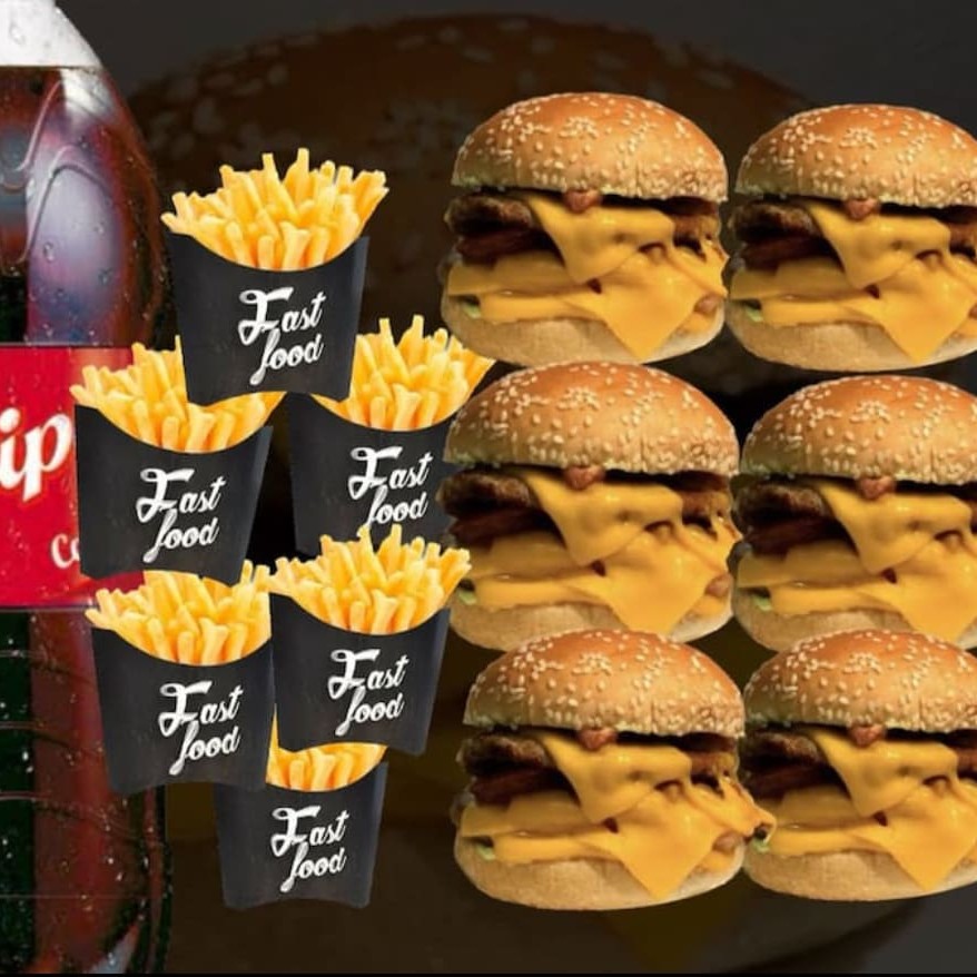 6 duplo cheddar, 6 batatas pp e 1 convenção 2l