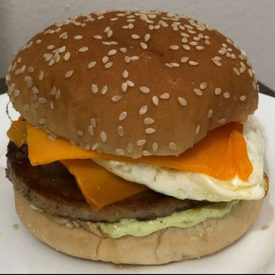 pão, molho verde, 1 carne, ovo e queijo mussarela