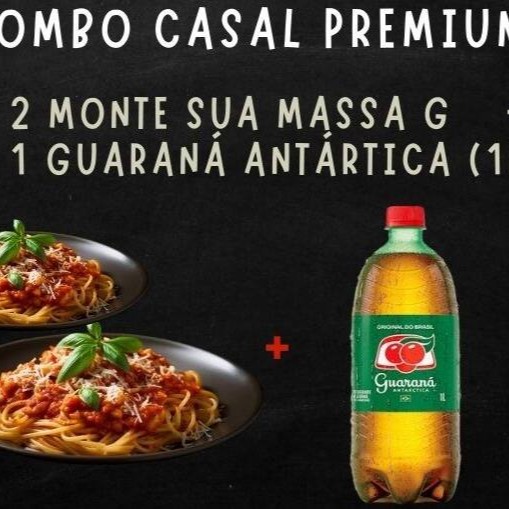 Aprecie nosso incrível combo '2 Monte Sua Massa Tamanho G + 1 Guaraná Antártica 1l'. Uma requintada combinação que garante a satisfação em dobro com duas deliciosas massas, cuidadosamente preparadas ao seu gosto. Para realçar ainda mais sua experiência, um refrescante Guaraná Antártica de 1l complementa esta oferta. Para validar a promoção, as duas massas selecionadas precisam ser idênticas. Uma oferta irresistível, especialmente elaborada para os verdadeiros amantes da culinária italiana.