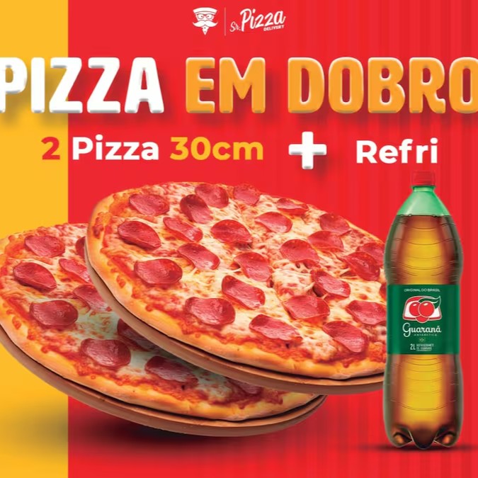 Quando a fome é dupla, o Pizza dobra a diversão: 2 pizzas médias 30 cm (sabor livre) + refrigerante. Perfeito pra dividir (ou não contar pra ninguém).