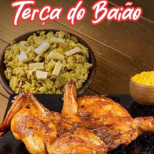 Acompanha baião de dois com queijo Qualy, frango assado. Indicado pra uma pessoa.