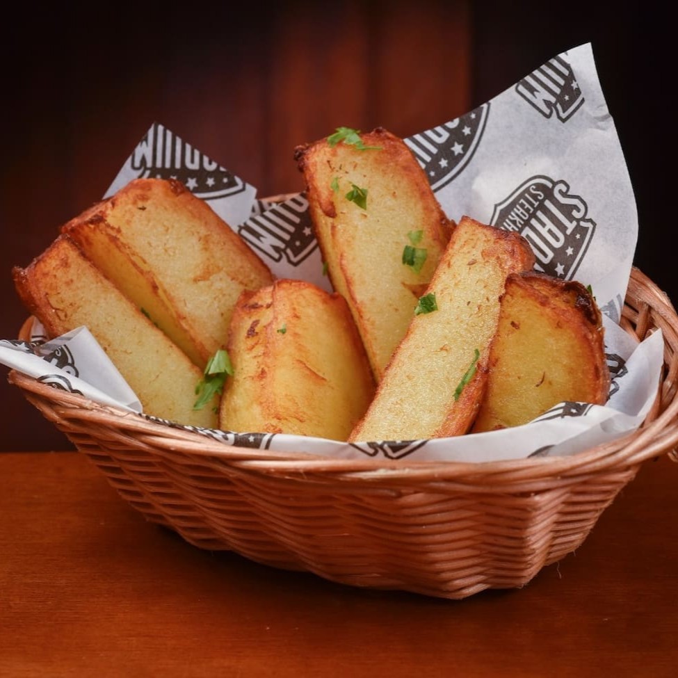 Pão Artesanal com pasta de alho do stadium e queijo parmesão.
